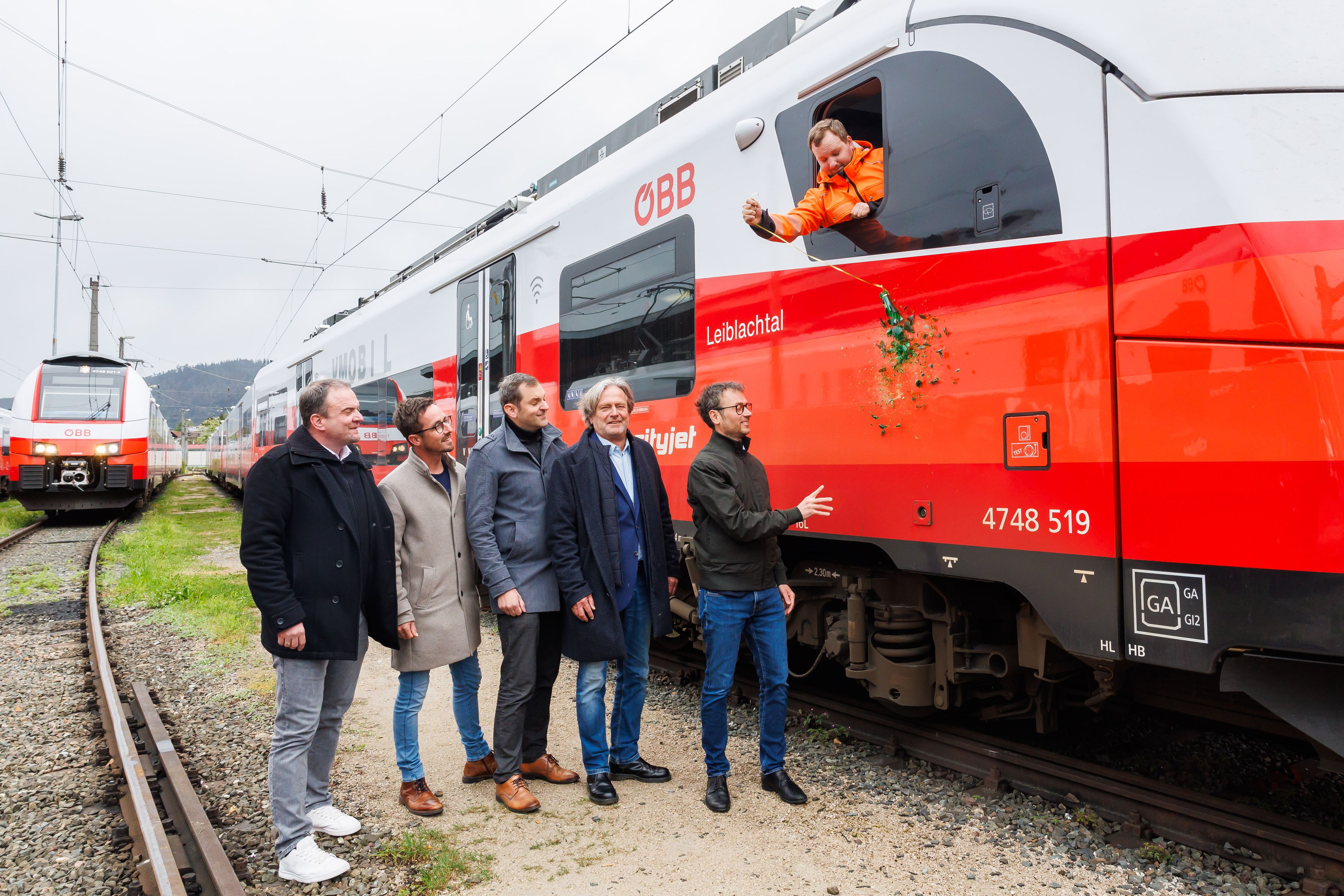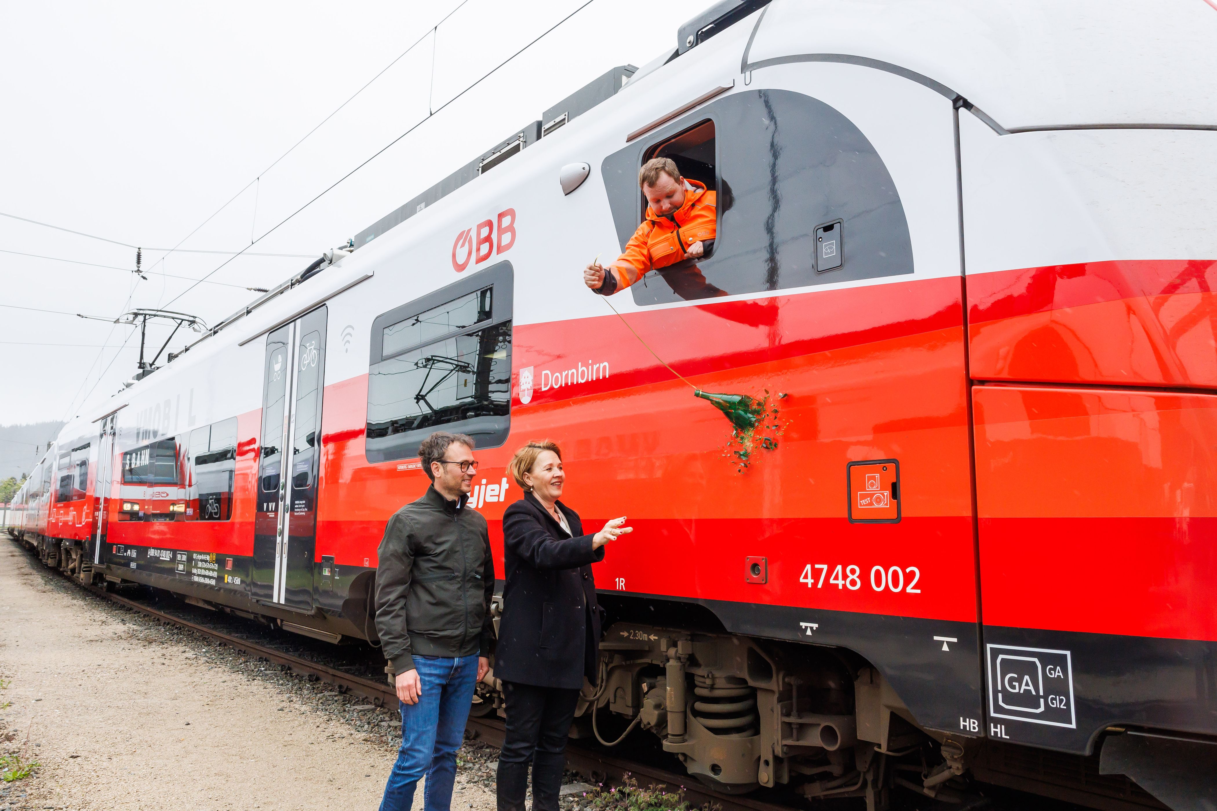 Mobilitätslandesrat Daniel Zadra und ÖBB-Personenverkehr-Regionalmanager Marcus Ender nahmen gemeinsam mit den BürgermeisterInnen Andrea Kaufmann (Dornbirn), Florian Kasseroler (Nenzing), Nico Flachsenberger (Eichenberg), Lukas Greussing (Möggers), Andreas Kresser (Hörbranz), Wolfgang Langes (Hohenweiler), Frank Matt (Lochau) sowie mit Gemeinderat Alexander Schwaszta (Rankweil) die kurze Zeremonie vor.