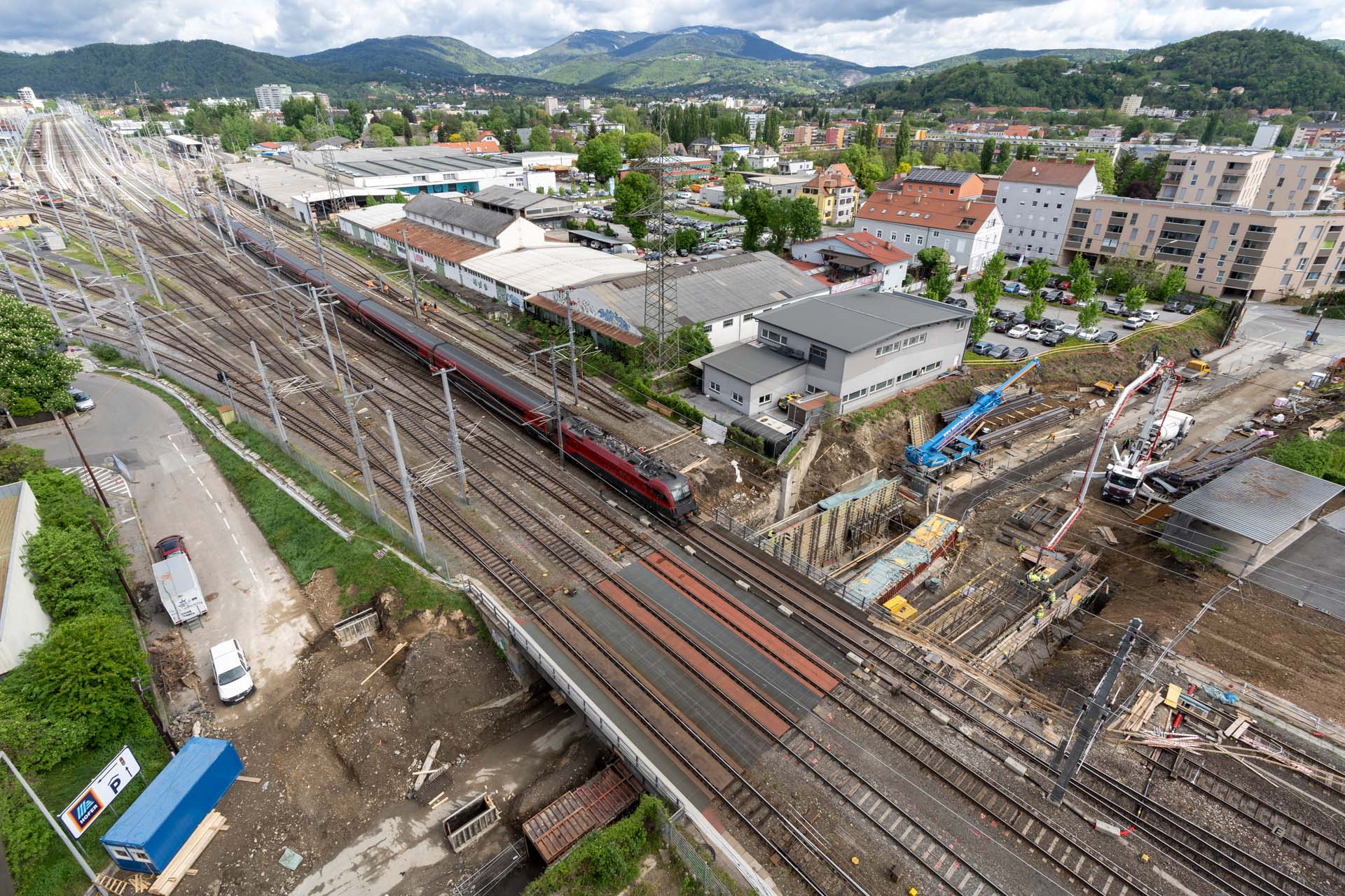 Bis Mitte 2026 wird die Eisenbahnunterführung Peter-Tunner-Gasse im Grazer Norden fit für die neue Südstrecke gemacht. Die Arbeiten schreiten planmäßig voran. Ab Mai wird bereits das erste von drei neuen Tragwerken betoniert.