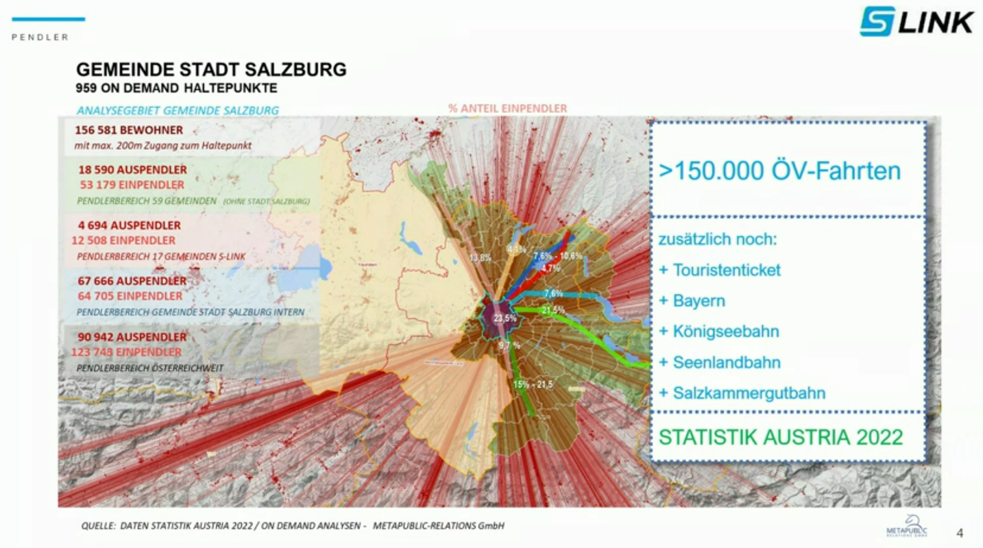 Mit dem S-LINK können weitere wichtige Stadtteile angebunden werden: Neustadt, Altstadt, Nonntal, Salzburg Süd (Alpenstraße), Morzg.