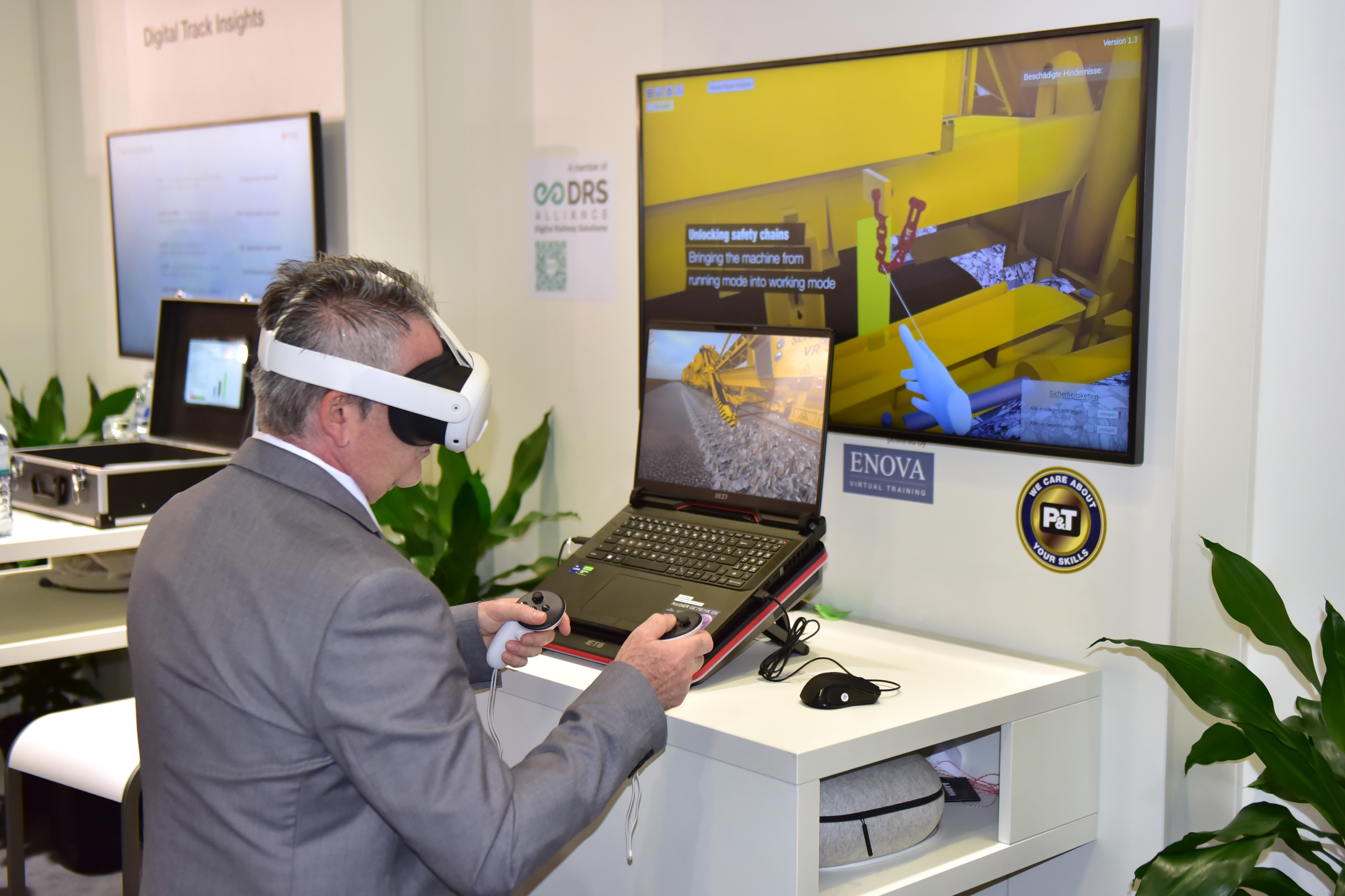 3D-Simulationstools für Schulungen und Trainings auch beim Maschinenbetreiber erlauben realitätsnahe Übungen zum Fahren und Bedienen. Die kompakte Lösung mit Computer und VR-Brille braucht nur einen Arbeitstisch und wird für mehrere, unterschiedliche Maschinentypen angeboten.