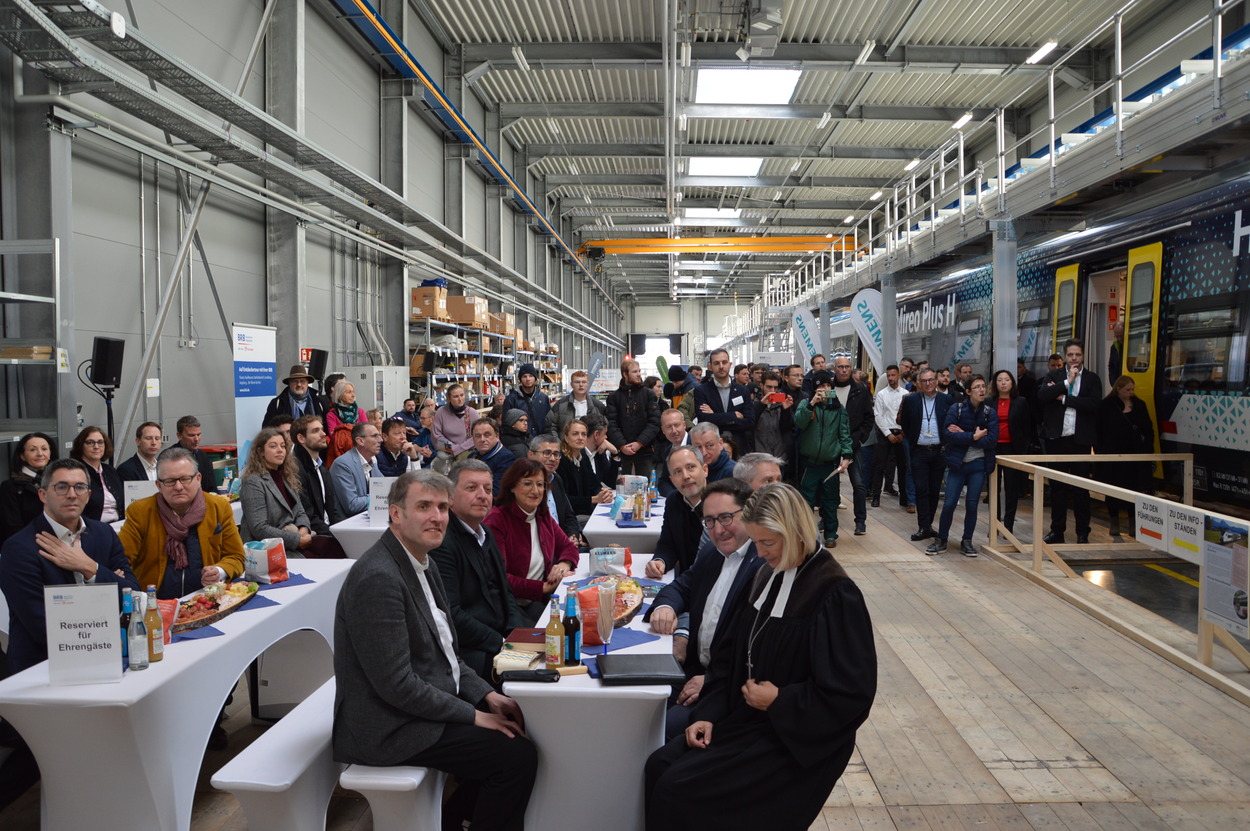 Das Interesse am Wasserstoffzug im BRB-Bahnbetriebswerk in Augsburg war sehr groß. © BRB