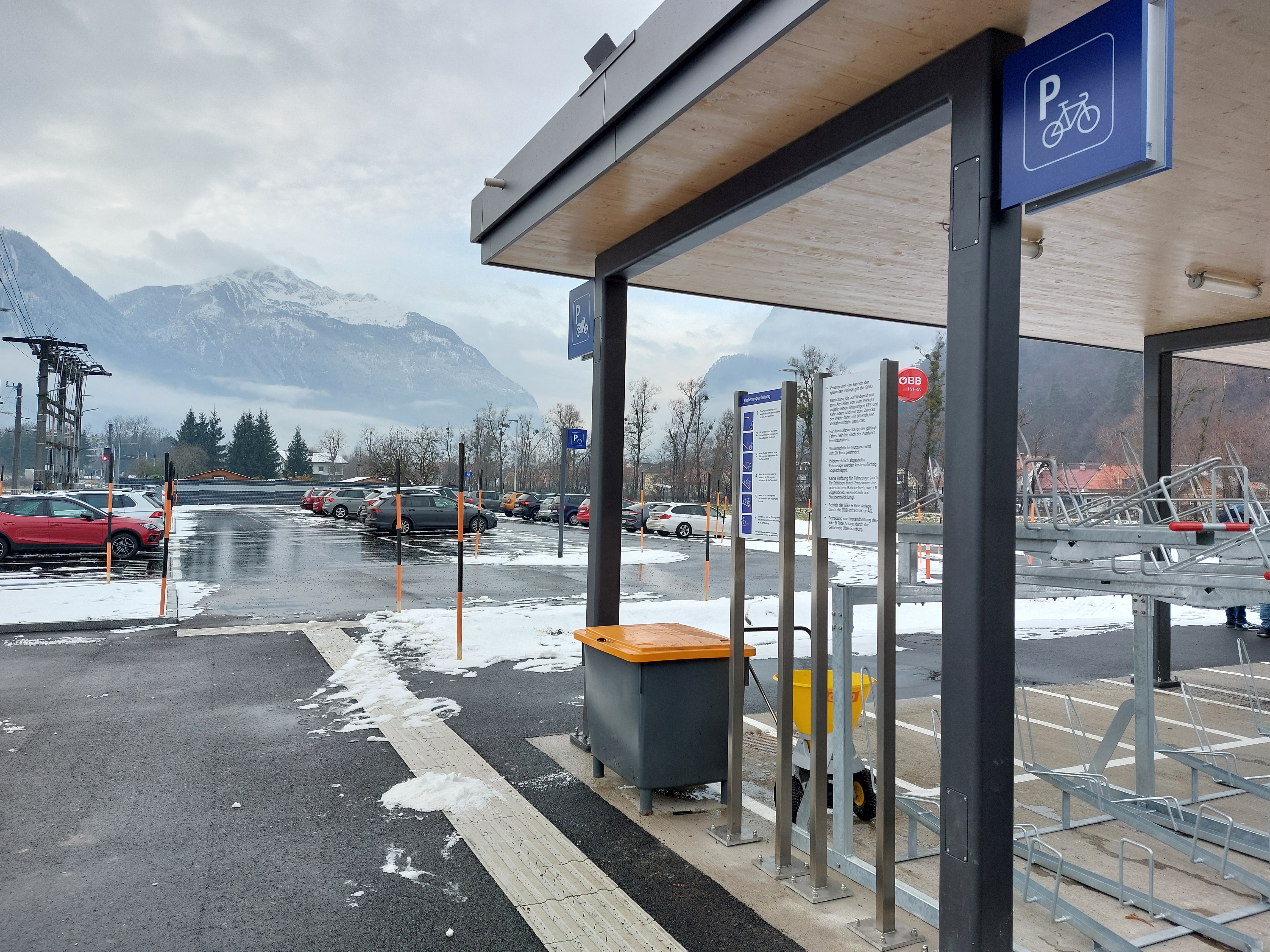 Barrierefreiheit und mehr Platz und Komfort am Bahnhof Oberdrauburg. Ein neuer Mittelbahnsteig, ein neuer Bahnhofsvorplatz mit Bushaltestellen, moderne Ausstattung, zusätzliche Park&Ride und Bike&Ride Stellplätze stehen zur Verfügung.