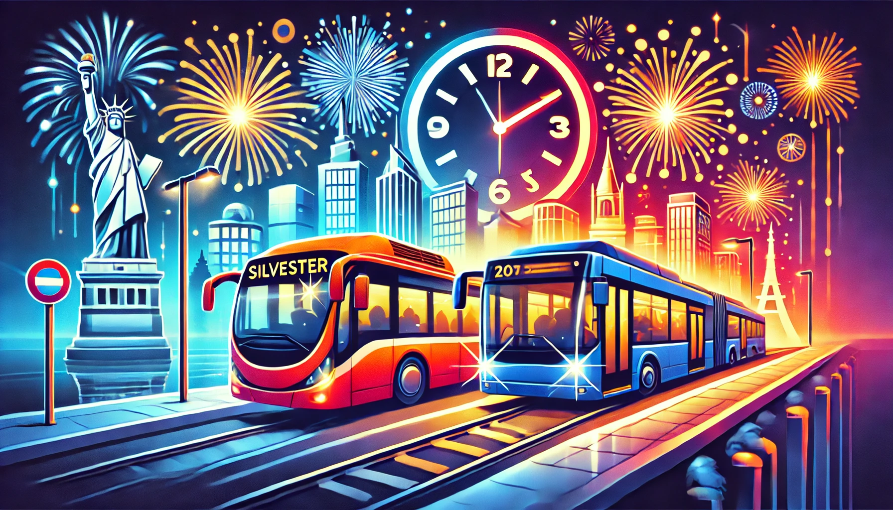 An Silvester gelten oft geänderte Fahrpläne und Sonderverkehre im öffentlichen Nahverkehr. Informiere dich rechtzeitig über zusätzliche Verbindungen und Fahrzeiten, um sicher und stressfrei ins neue Jahr zu starten!