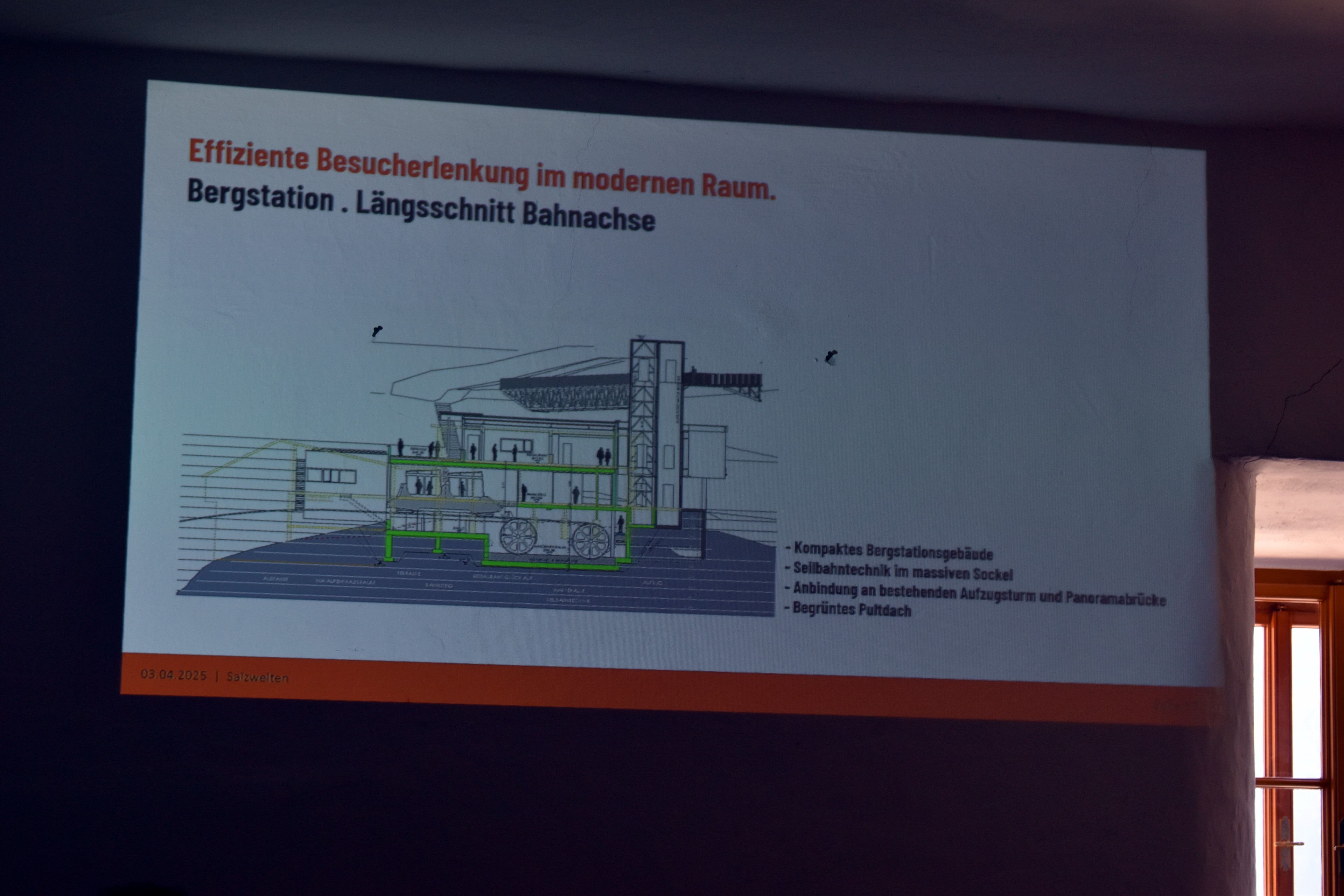 Am 3. April wurde die neue Standseilbahn für Hallstatt vorgestellt, ein Gemeinschaftsprojekt der Salzwelten, des Architekturbüros Hasenauer.ARCHITEKTEN und der Doppelmayr Gruppe. Mit dieser neuen Seilbahn wird die Kapazität von derzeit 24 auf 60 Personen pro Fahrt erhöht, um den steigenden Anforderungen des Tourismus gerecht zu werden. Das genehmigte Projektbudget beläuft sich auf 25 Millionen Euro und dient der touristischen Weiterentwicklung und Zukunft der Salzwelten am Standort Hallstatt.