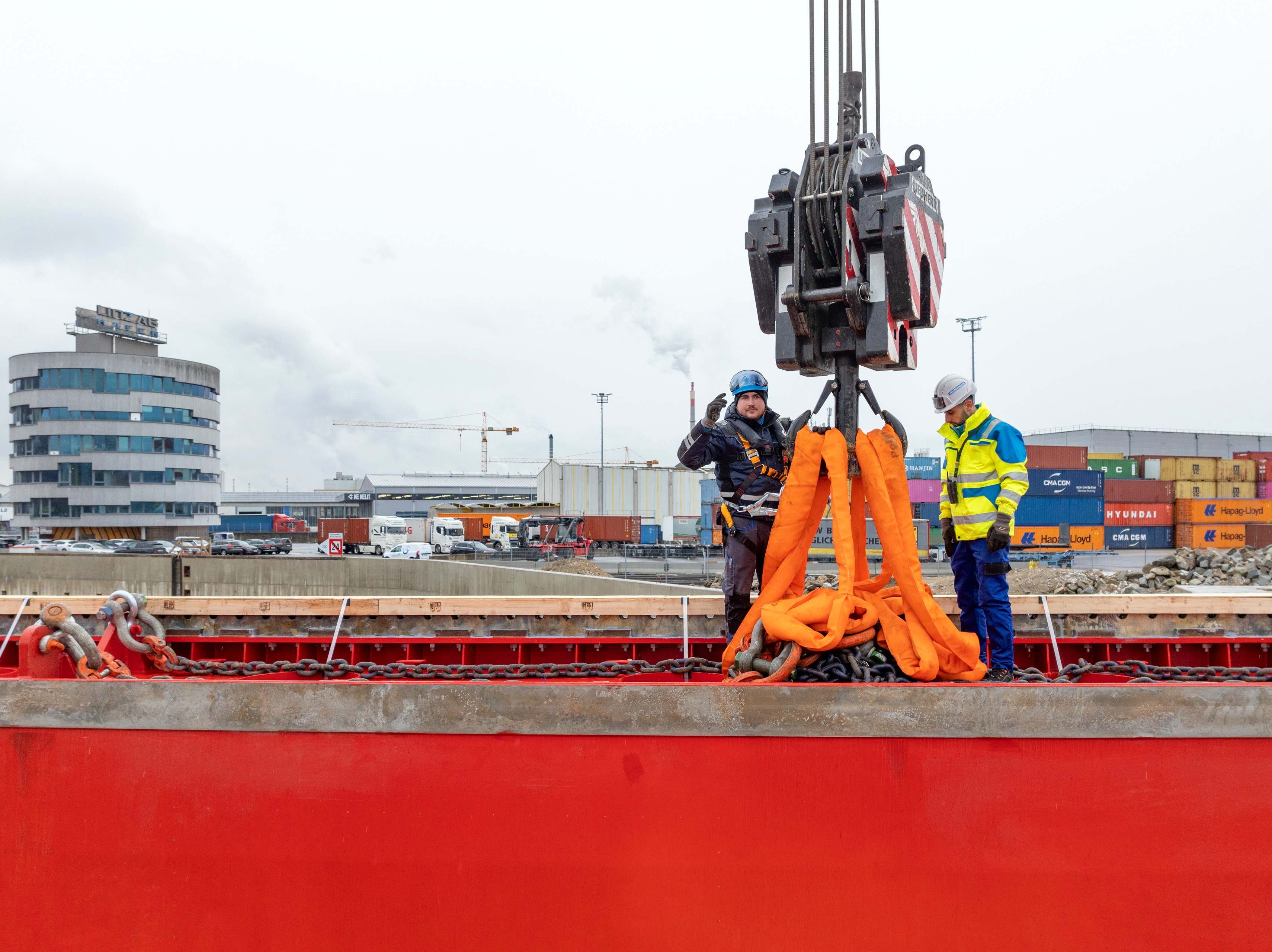 „Es war ein interessantes, nicht alltägliches Projekt. Neben dem Zeitdruck durch die Verspätung und den extremen Wetterbedingungen, war auch die Beschaffenheit der Bauteile eine Herausforderung“, erzählt Maier-Bauer und erklärt weiter: „Deren Schwerpunkt war ungünstig. Das heißt, sie mussten zentimetergenau angeschlagen werden, um zu garantieren, dass sie bei der Montage vertikal in die Torkammer eingehoben werden konnten.“