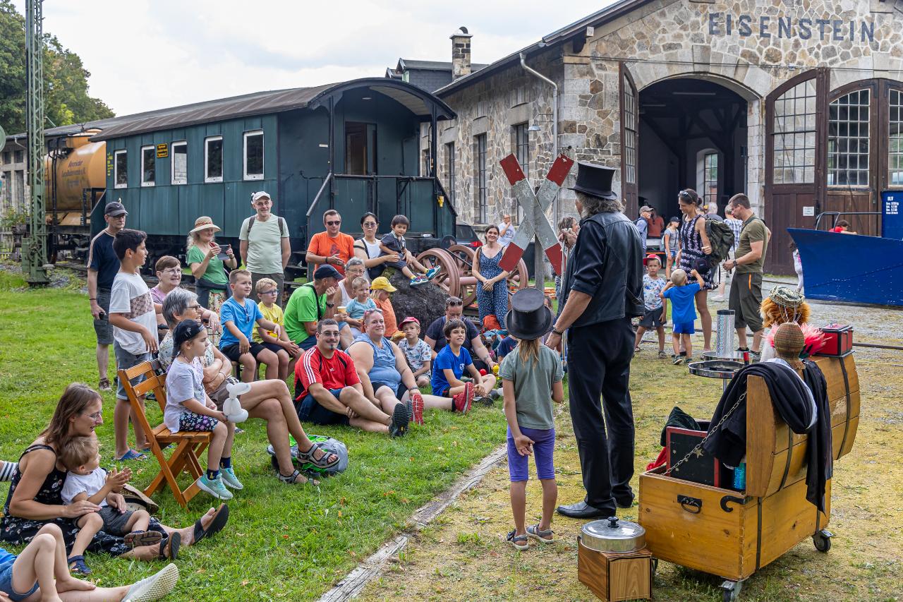 Sonderfahrten mit historischen Eisenbahnfahrzeugen, Führungen im Localbahnmuseum Bay. Eisenstein, Infostände von Feldbahn Riedlhütte und Förderverein Hauzenberg-Passau/Granitbahn, Mitfahren mit Parkbahn für junge Besucher, und ein Zauberer