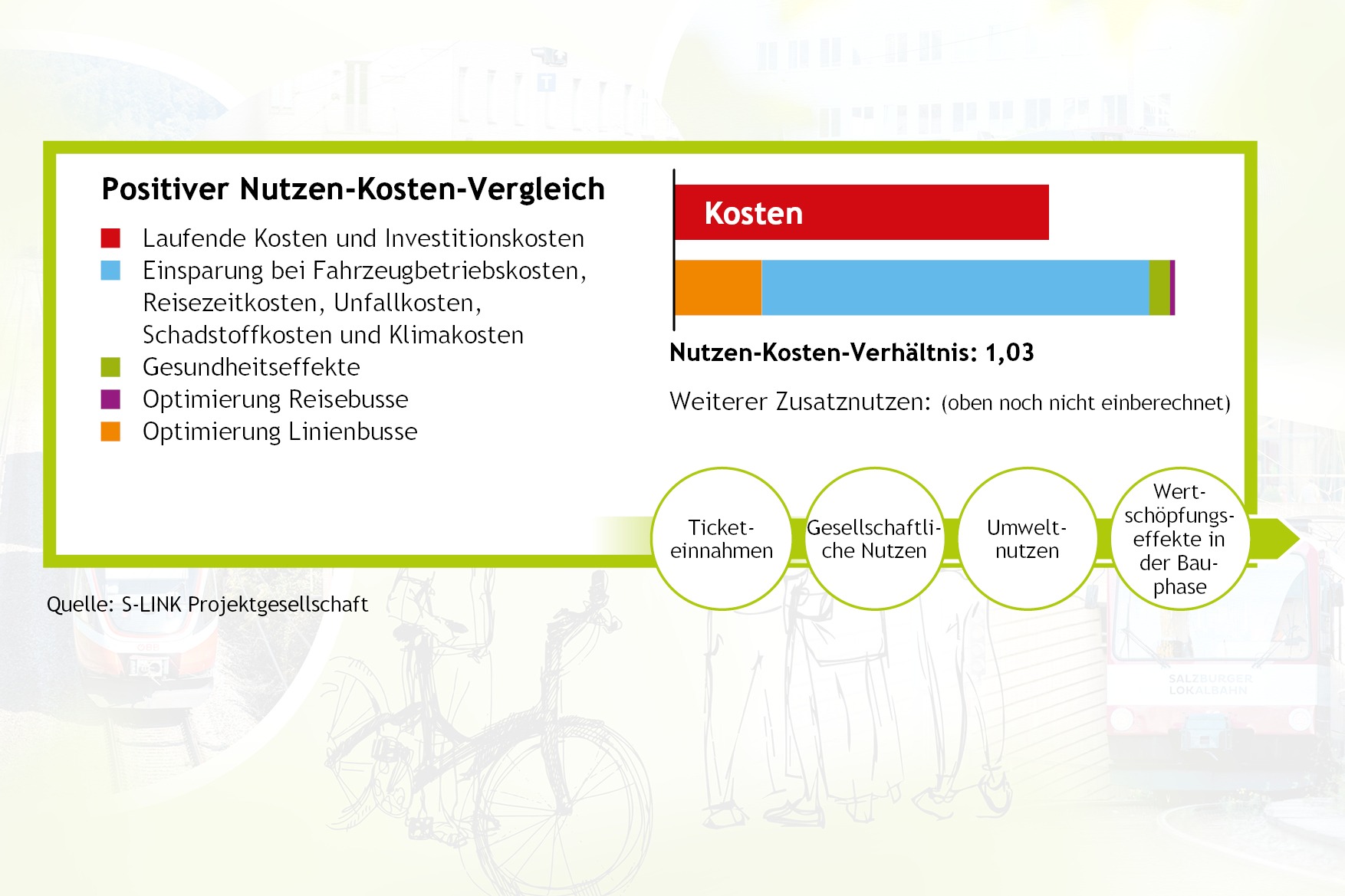 46,8 Prozent stimmten bei der Bürgerbefragung für den S-Link, also fast die Hälfte! Nun stellt der Verfassungsgerichtshof diese Abstimmung in Frage. Der Flachgau hat sich mehrheitlich für die Lokalbahnverlängerung ausgesprochen und hat das Zukunftsprojekt gewählt.
